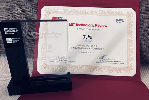 was selected as one of the recipients of the innovators under 35 China by MIT Technology Review